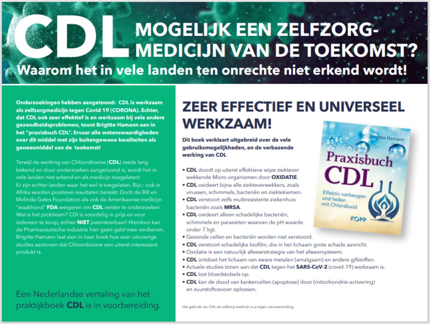 Starten met 10 druppels CDL op één liter kraanwater, verdeeld over de dag innemen.